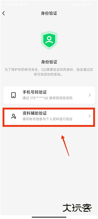9、切换至资料辅助验证页面,中间位置点击开始验证,请好友用回执编号完成验证即可。