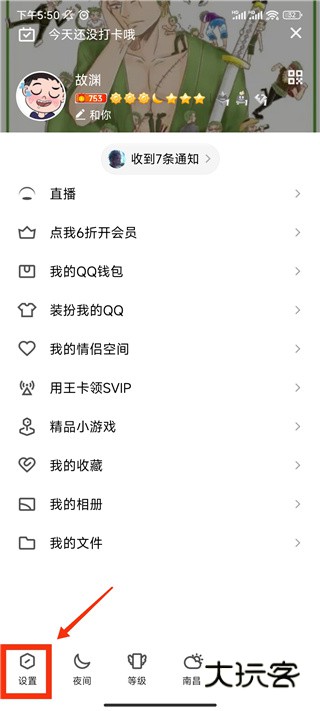 3、进入到qq主页面,右上方位置找到头像图标并点击,然后切换至新的页面之后,左下方位置找到设置选项点击进入;