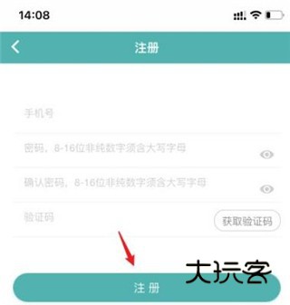 1、打开应用后,在登录界面,点击注册的选项。填写注册信息后,点击下方的注册。