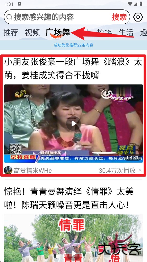 4、在广场舞栏目中,平台会推荐舞蹈视频与相关资讯,让喜爱广场舞的用户找到兴趣内容,边看边学,提升生活乐趣。