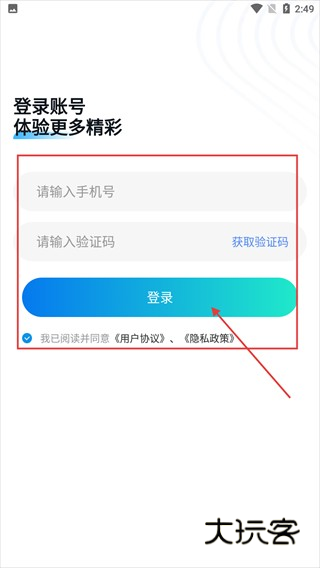 1、先在【请输入手机号】输入框填写手机号,点击【获取验证码】,勾选协议后点击【登录】。