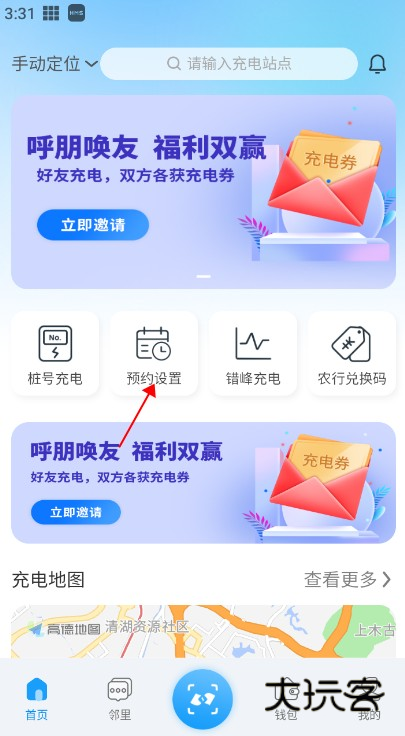 2、在首页点击预约充电