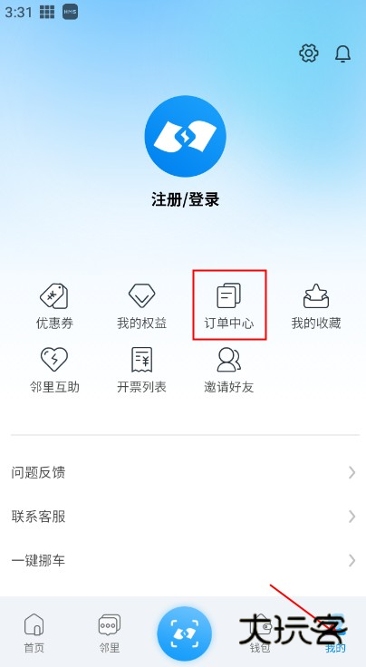4、在我的页面点击订单中心可以查看自己的历史订单信息