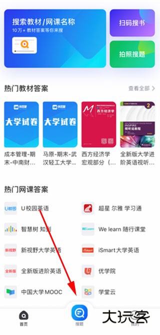 3. 覆盖全国的高校教材为学生提供智能题库,支持图片搜索和输入搜索,帮助大学生解决不懂的问题