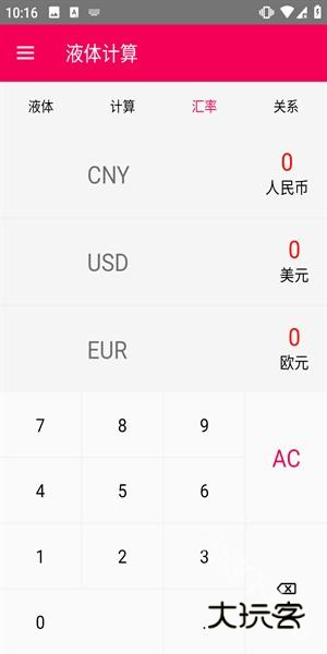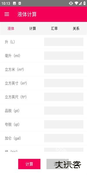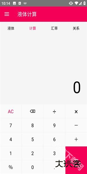 2、有四种计算方式,液体、计算、汇率、关系,点击计算可以计算各种数值,就跟普通的计算机一样。