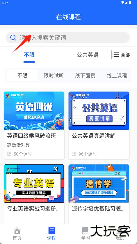 4、输入课程的名称以后,可以在app中快速的查询课程信息;