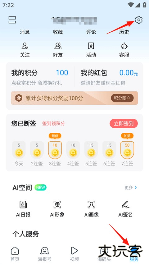 1、打开海报新闻APP,点击我的-右上角设置图标;