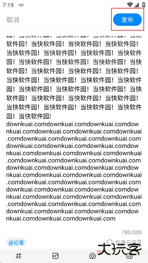 2、在编辑页输入您想要投稿的文字,下方还支持插入图片、视频及链接,完成后点击右上角发布;