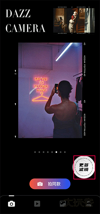 1、首先打开dazz相机最新版,点击更多滤镜;