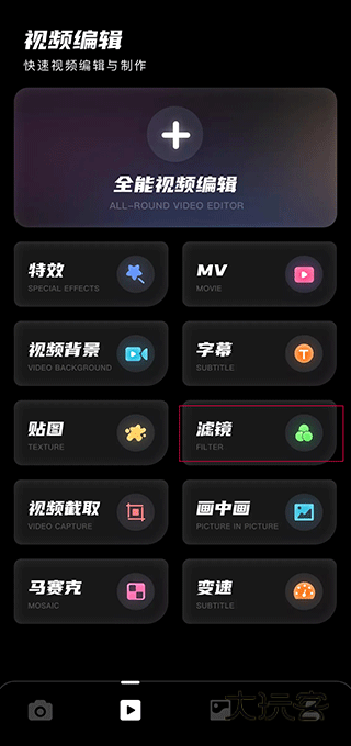 4、另外点击功能模块,选择滤镜也可以选择。
