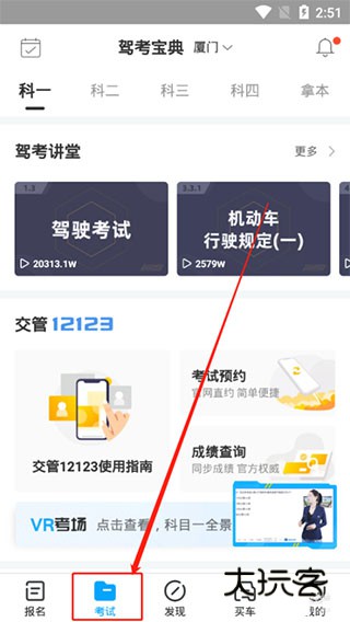 1、打开手机上的驾考宝典软件,如果只是为了查询成绩,是可以不用登录的哦。