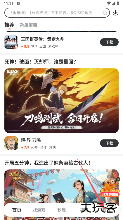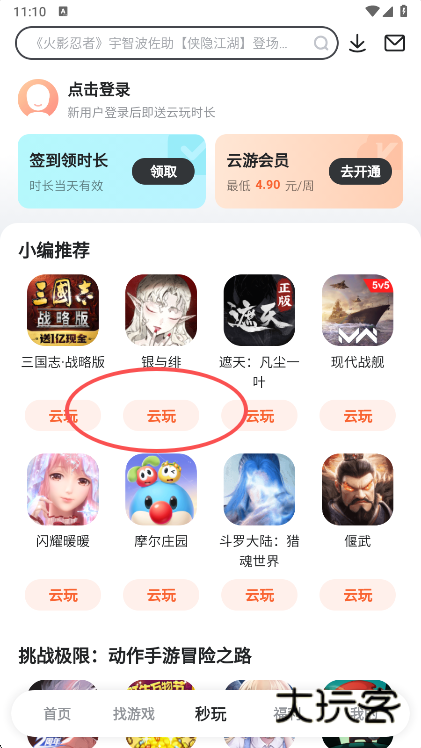2、在这里您可以看到海量的云玩游戏,都是可以秒玩的