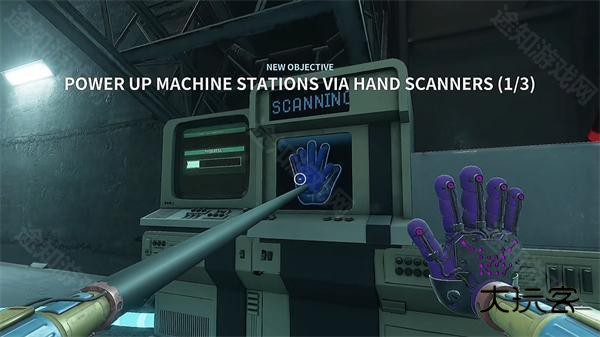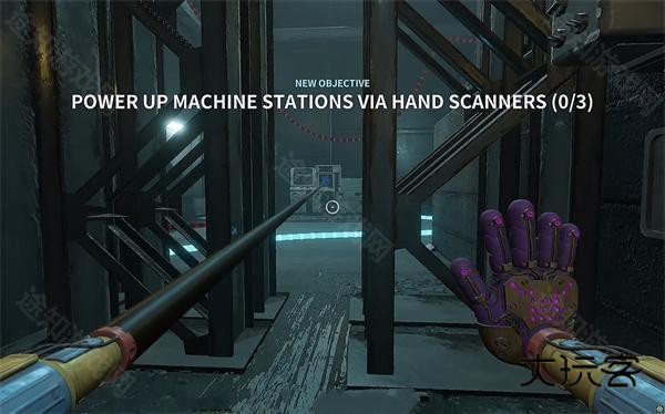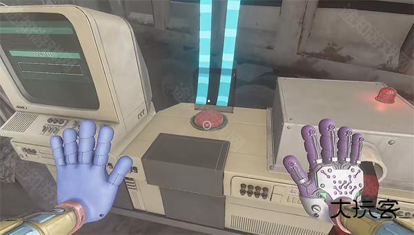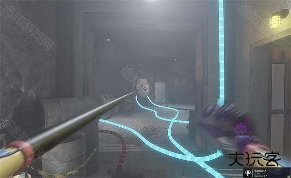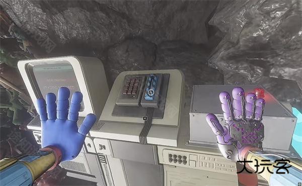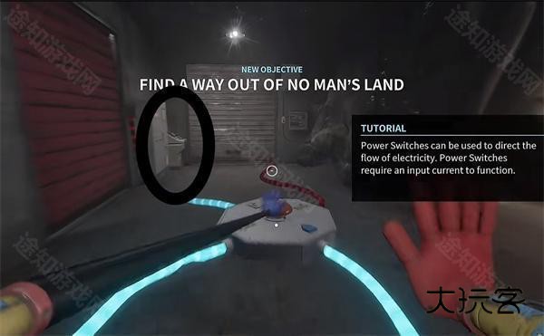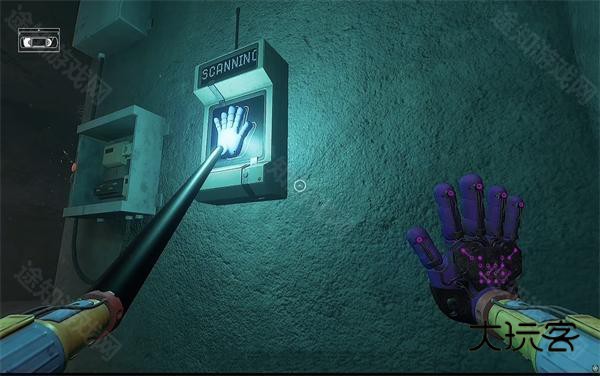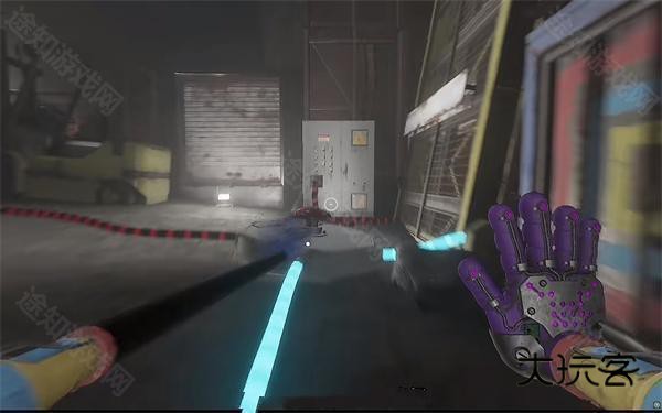 6、开门之后走里面还会有一个开关给他拉下来,往前走进去用蓝色手臂互动一下前面的开关,这里要触发三个开关才能有电流打通出口