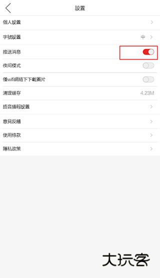 4、“推送消息”后面的圆点变为红色即表示澳门日报开启推送消息成功