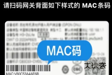 - 绑定智能网关(光猫),可直接选择“扫码绑定”,扫描光猫背面的MAC条形码即可。