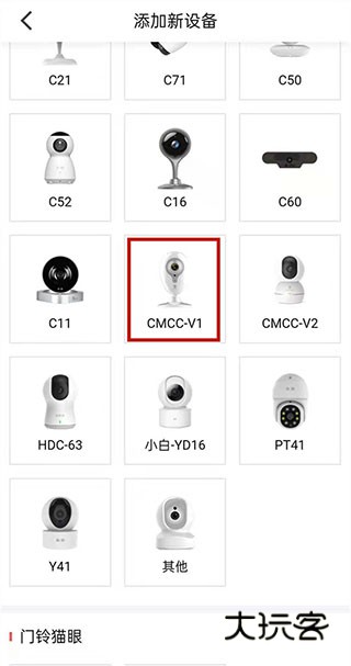 在设备列表中选择您想要绑定的设备类型,例如智能网关(即光猫)、智能摄像头、智能插座等。