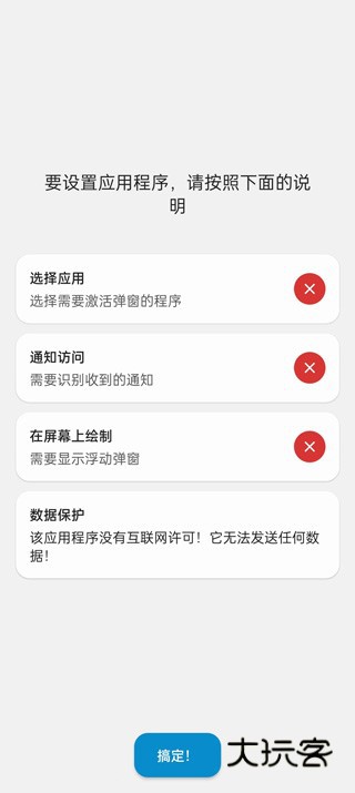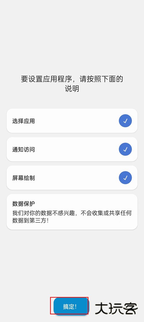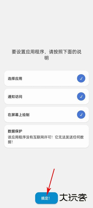 1、首先我们需要给予软件的下方的所有权限,给予全部权限之后,然后点击搞定进入到功能界面。