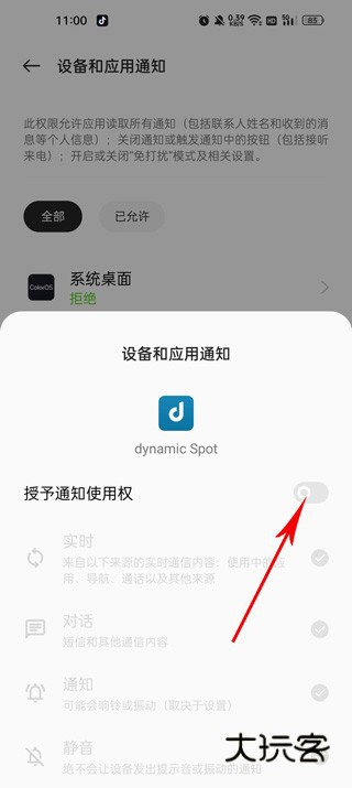 4、之后需要打开需要识别收到的通知权限;