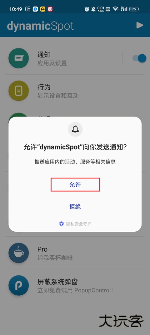 5、最后要打开需要显示浮动弹窗权限;