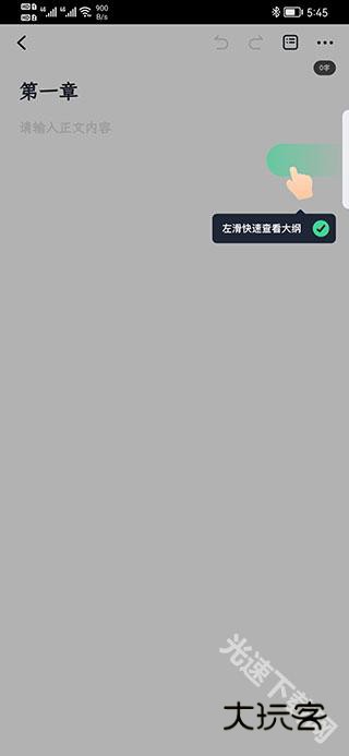 5、来到编辑界面,界面简简单单,左滑可以快速查看大纲。