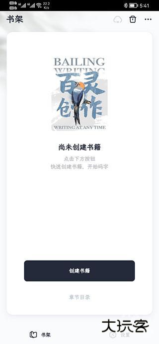 1、下载安装后,打开软件,我们看到界面非常简洁,没有广告,是个实打实的创作软件,现在还没有创建书籍,我们点击创建书籍,进行下一步。