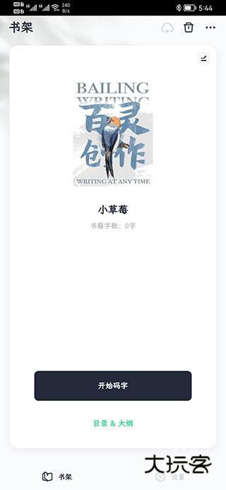 3、创建完成,在首页显示刚刚创建的书籍,接下来可以开始创作了,点击开始码字。