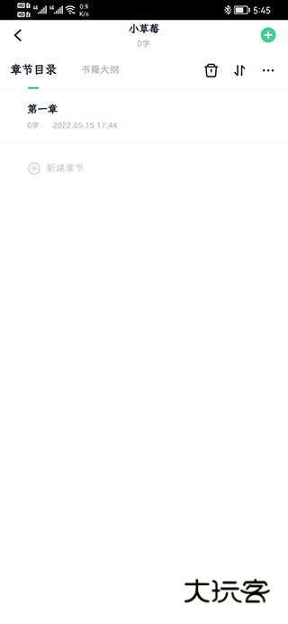 4、书籍是没有章节的我们点击新建章节,列表出现第一章,点击文字进入编辑界面。