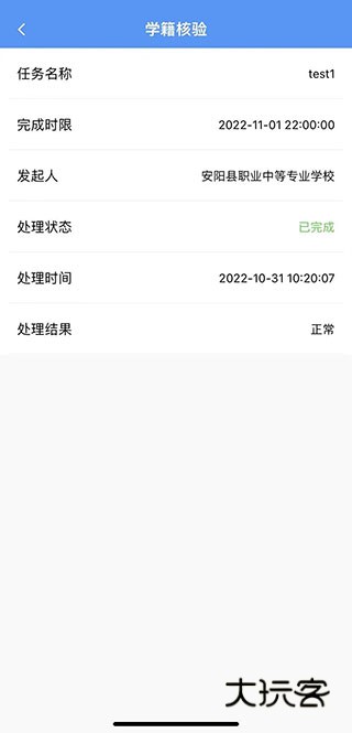 6、如果是在校核验的话,处理结果会是正常,否则显示异常或其他内容。