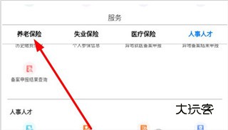 1、同样是在内蒙古人社app的服务界面,我们点击“养老保险”。