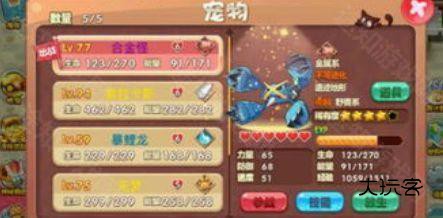三、种族:宠物有种族的划分,目前共有五大种族,种族之间相互克制,具体为:植物>飞行>海洋>金属>野兽>植物,克制种族在攻击和防御方面均会获得优势。