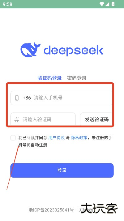 打开deepseek后,登录账号,用手机号默认为注册,也可以使用微信登录;