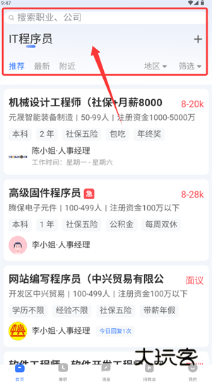 1、输入职位或公司名字就能找到对应的招聘职位,可以查看招聘的条件。