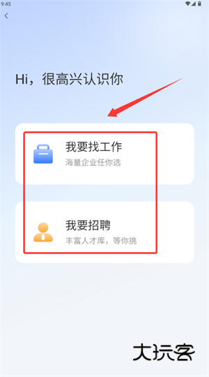 1、启动应用后,在首页根据需求选择求职或招聘功能入口进入。