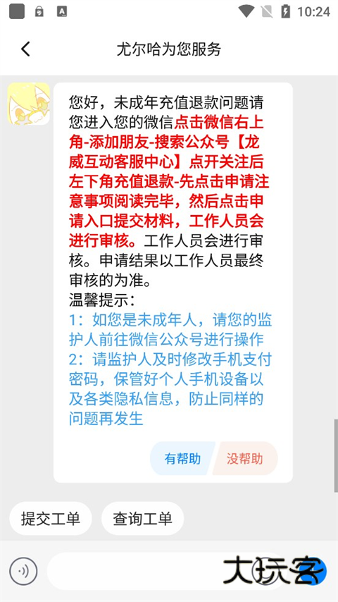 4、如是未成年充值,则可以选择第一项“未成年充值退款”;