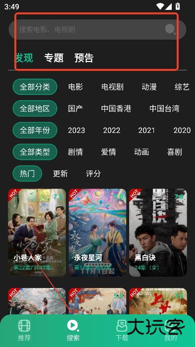 搜索板块,可以关键词精准检索喜欢的影音内容