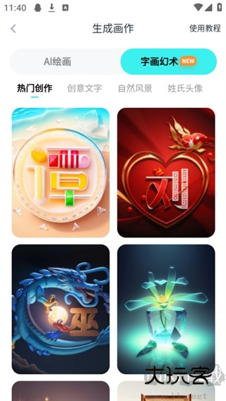 5、然后就能生成画作啦,然后点击字画幻术还能生成特殊图片,快来挑选一款自己喜欢的吧!
