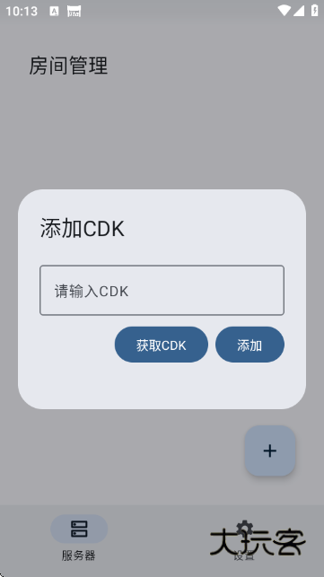 4、若有CDK,可进入房间管理的“添加CDK”界面,输入CDK后点击添加,也可点击获取CDK了解获取渠道