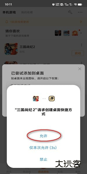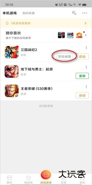 2、这里以三国战纪为例子,点击后面的“添加桌面”;