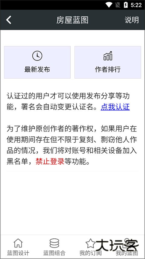3、在蓝图设计界面选择房屋蓝图,可以查看最新发布和作者排行的一些蓝图作品。