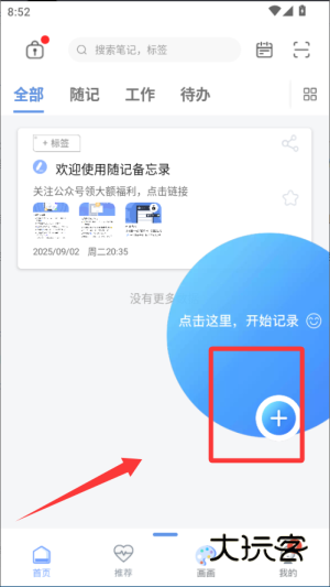 1、打开随记备忘录app,点击底部加号创建新笔记,输入你想记录的文本或清单内容。