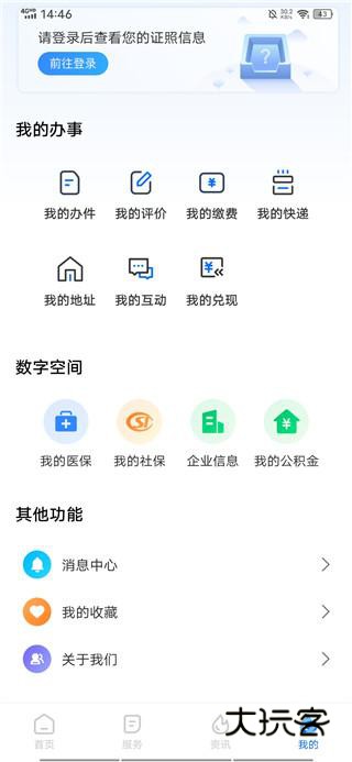 3. 软件包括政务服务厅、个人中心、政策信息等功能模块。用户可以根据自己的需要快速导航和查询。