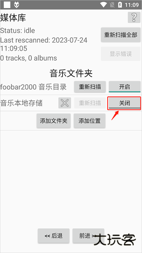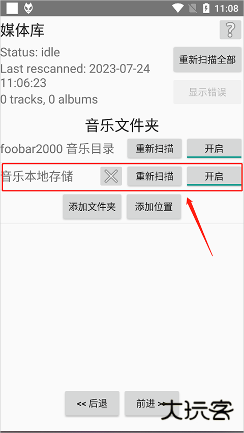 1、进入软件之后把这个“开启”一下,因为只有将这个打开才能扫描到本地存储的歌曲。