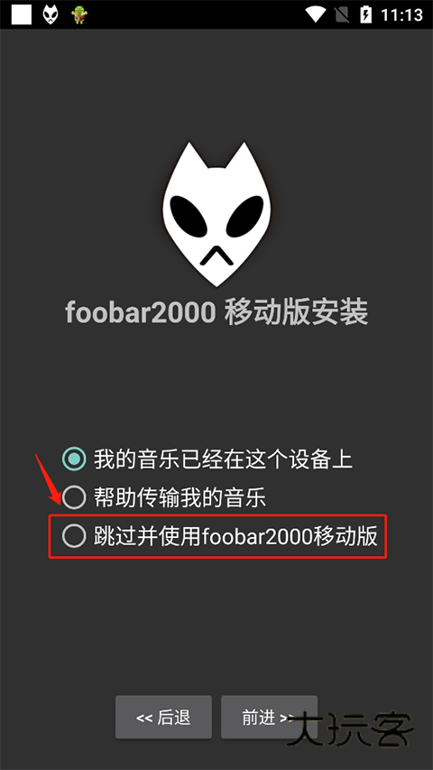 1、这里你可以选择“跳过并使用foobar2000移动版”。