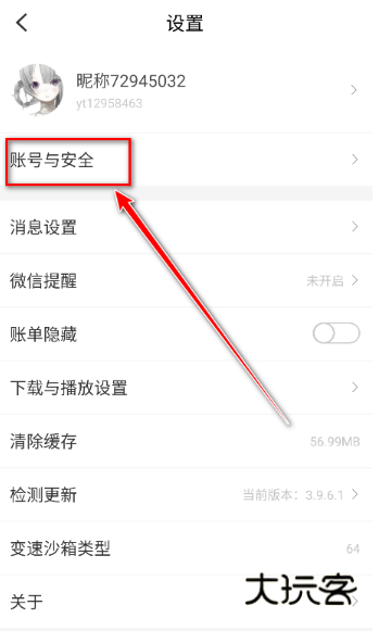 3、进入设置后,选择“账号与安全”选项,跳转至账号安全相关设置页面。