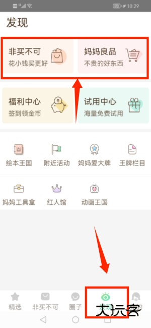 1、进入发现板块选择购物区域,浏览非买不可等专区。