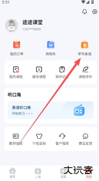 1、途途课堂学币的使用,有专门的学币商城栏目,可在个人主页点击进入学币商城。