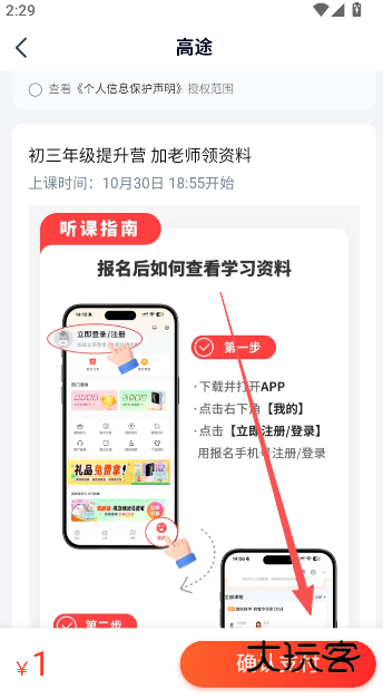 7、仔细查看课程学习方法以及领课程的方式,了解完毕以后点击确认支付。