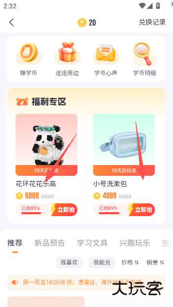 3、在使用学币购买时,一定要达到指定数量,否则无法购买。