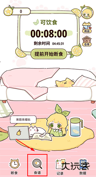 1、打开柠檬轻断食app最新版,点击下方的【食谱】图标;