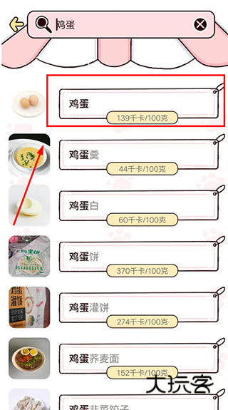 2、在【食谱】页面,最上方输入要查询的食物,如:鸡蛋;